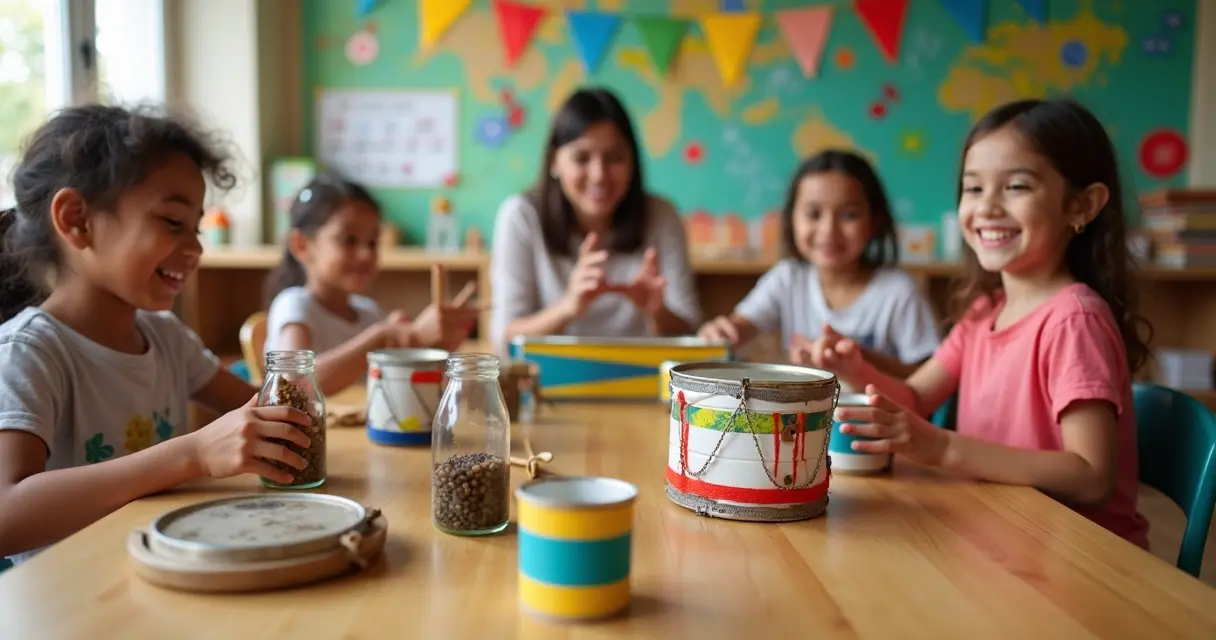 Instrumentos como chocalhos de garrafa pet, tambores feitos com latas, ganzás de tubos de papelão e apitos de canudo são ótimos para crianças, pois são seguros, fáceis de construir e proporcionam resultados sonoros imediatos. Essas opções permitem participação ativa, criatividade e muita diversão ao aprender música.